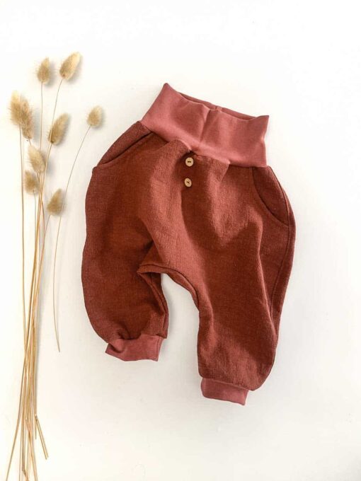 Dank weitem Schnitt und bequemen Bündchen an Bauch und Beinen ist die Hose ein echter Alleskönner und bietet viel Bewegungsfreiheit zum Toben. Der weiche und hochwertige Leinenstoff ist angenehm auf der Haut und eignet sich besonders für heiße Sommertage. Die Naturfaser ist außerdem atmungsaktiv, verhindert Schwitzen und ist besonders nachhaltig und robust.