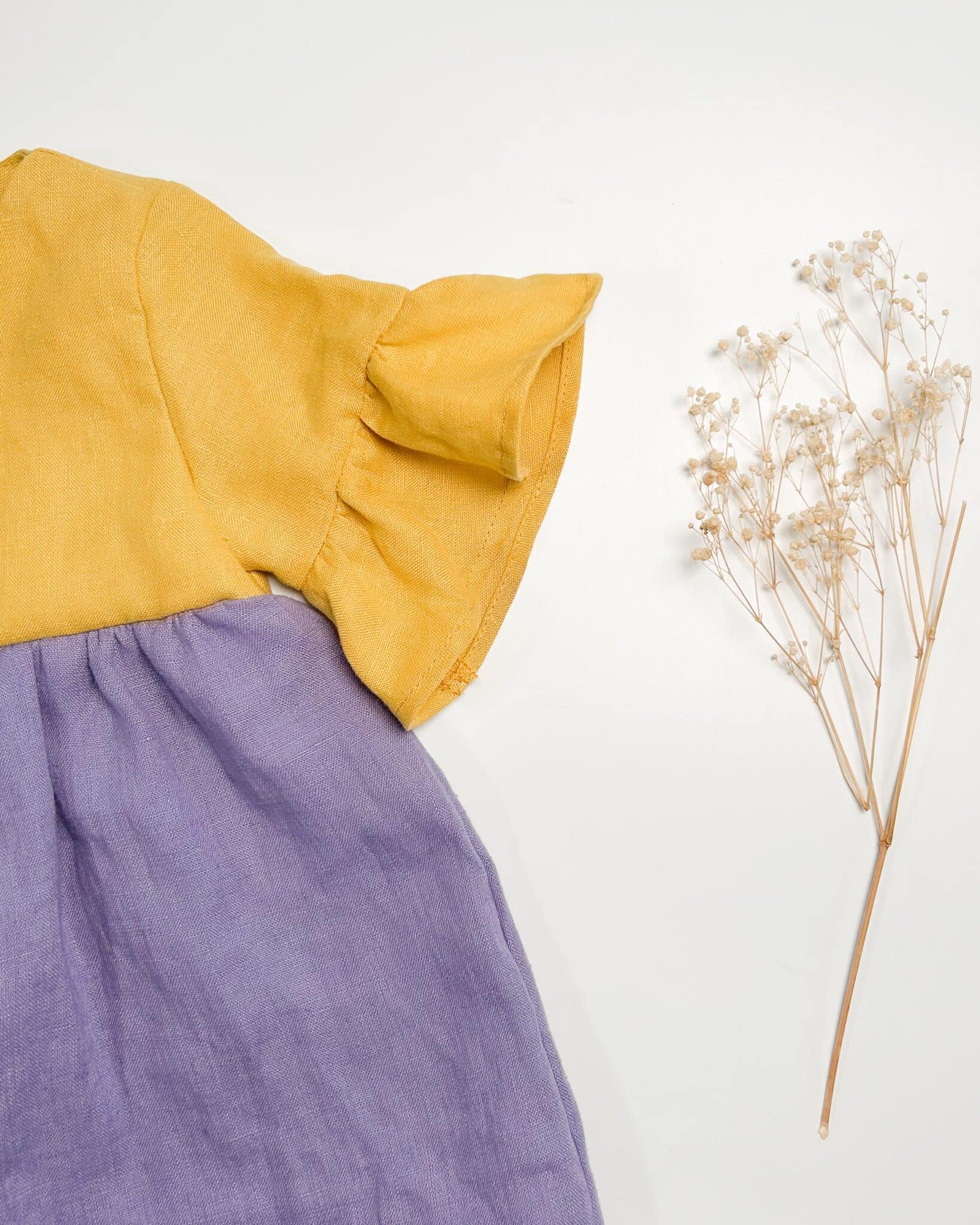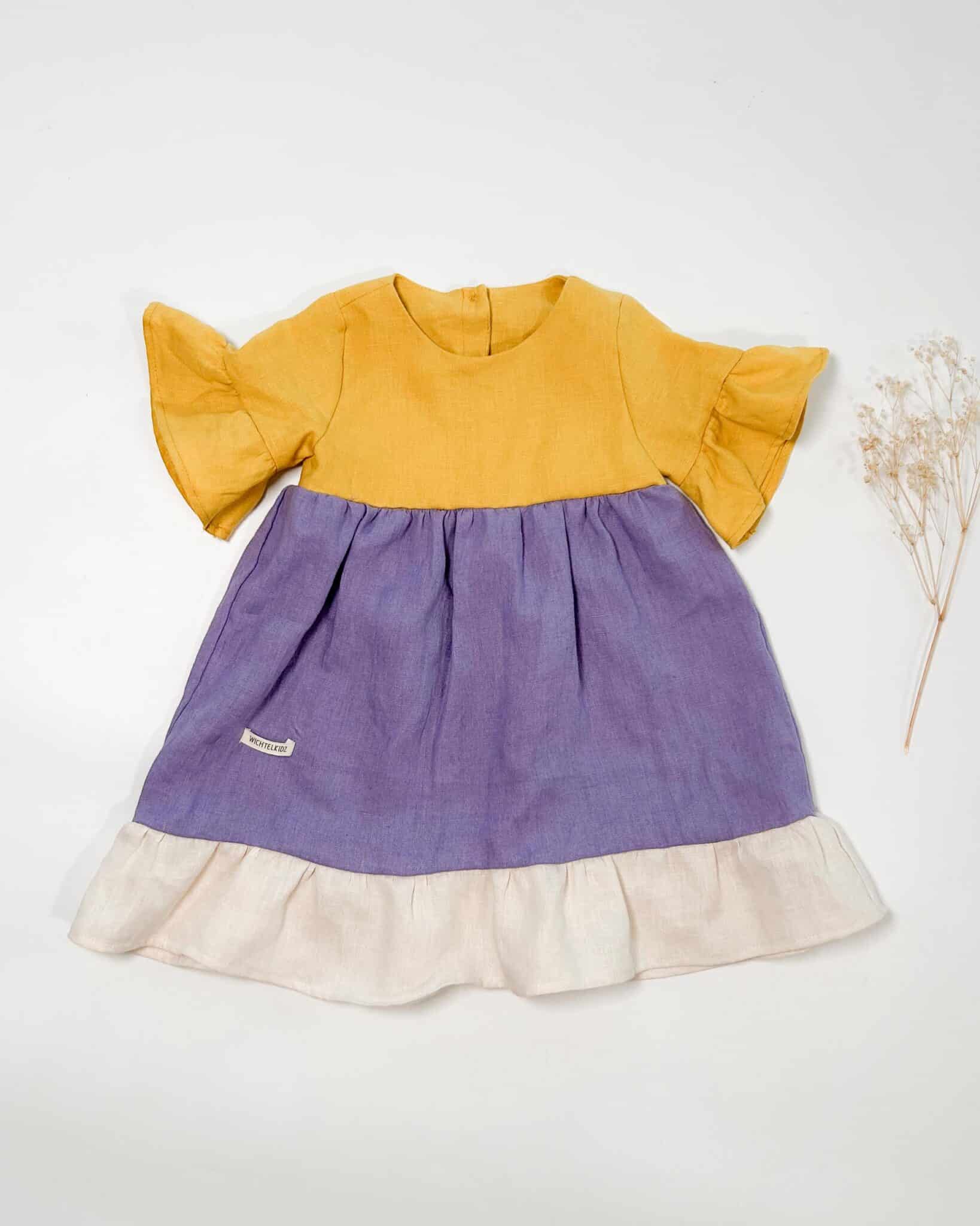 gestuftes Kleid aus 100% Leinen im Colorblock Stil