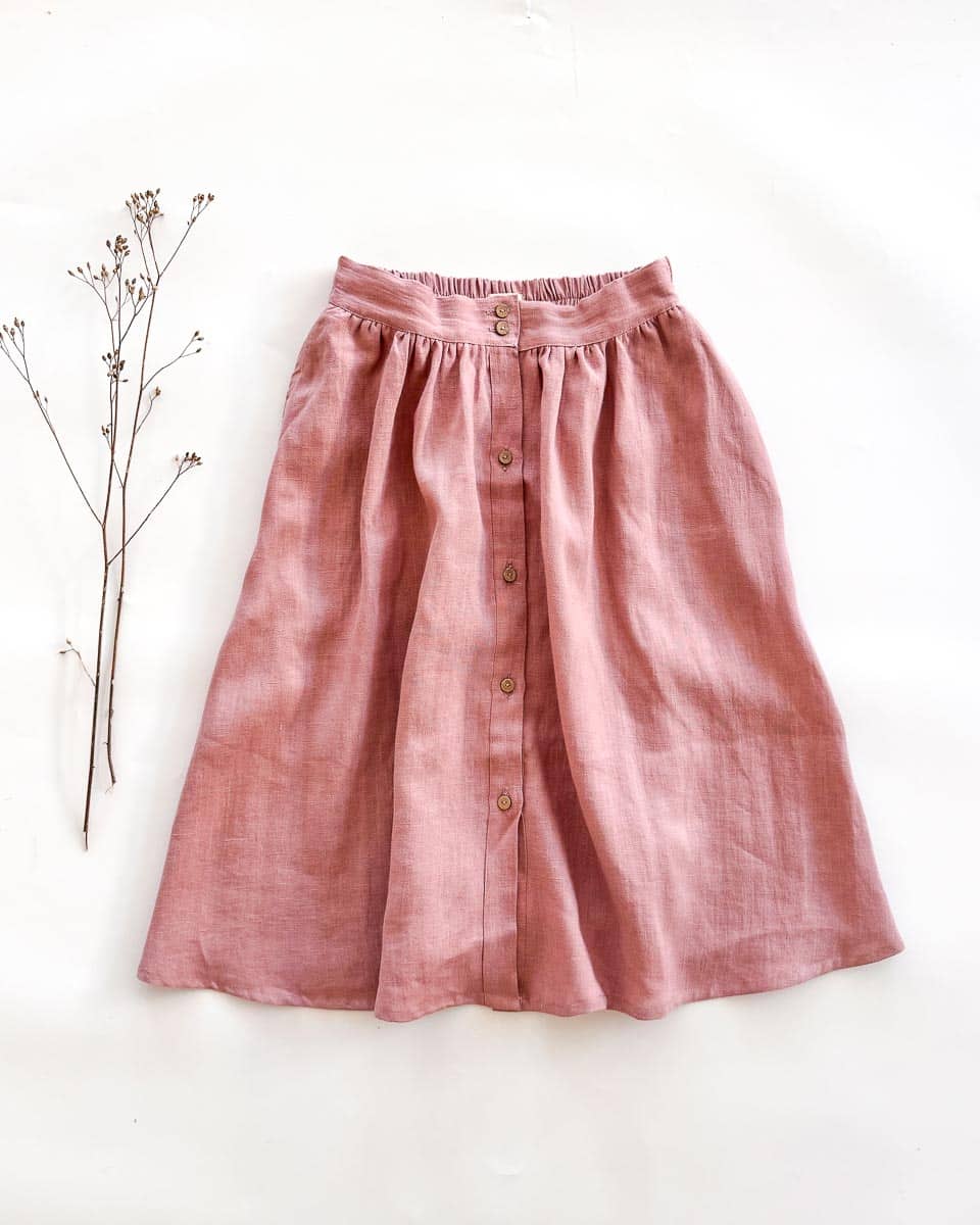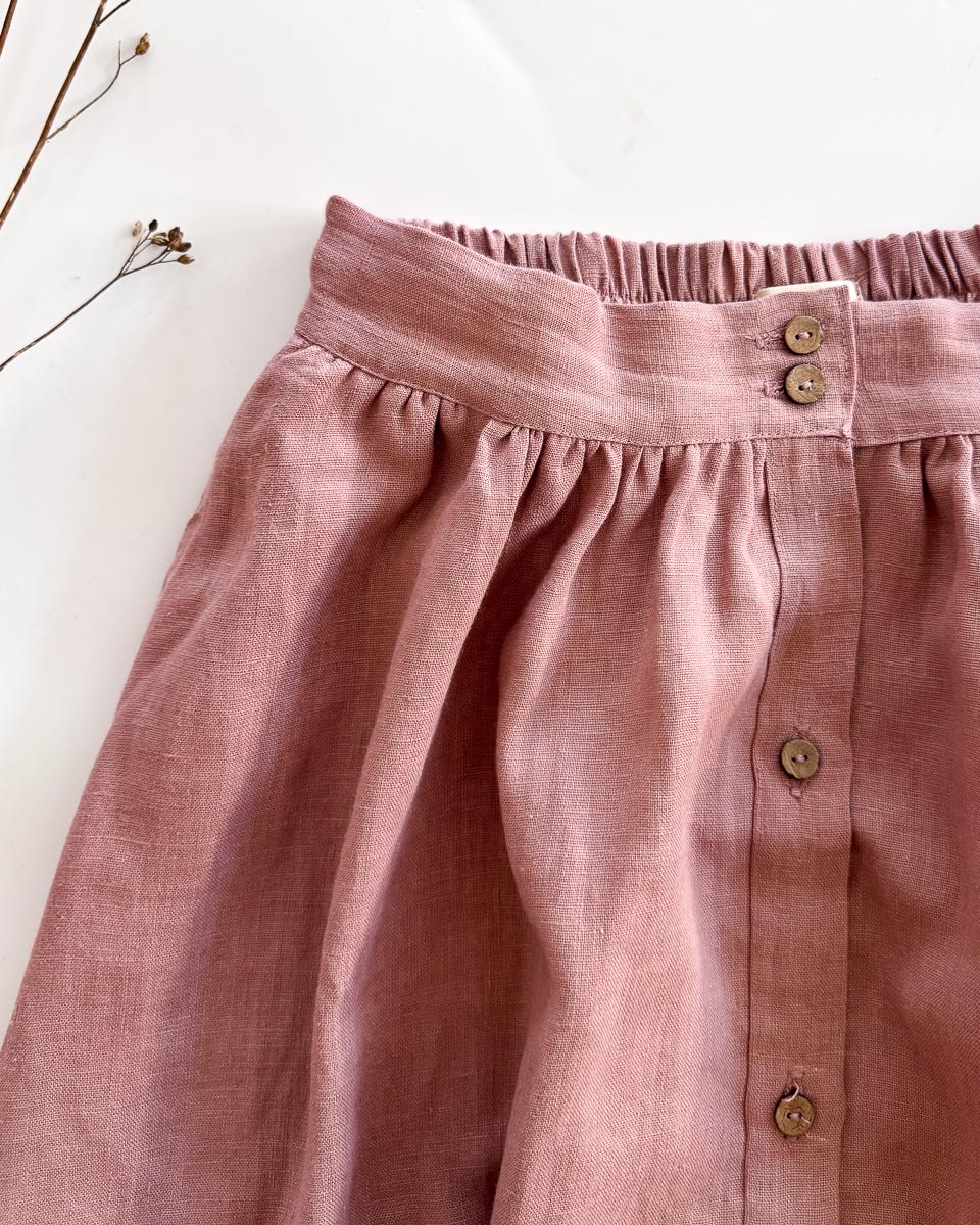Sofortkauf: Damen Leinenrock mit Knopfleiste und Taschen in Altrosa, Gr. M (38/40)