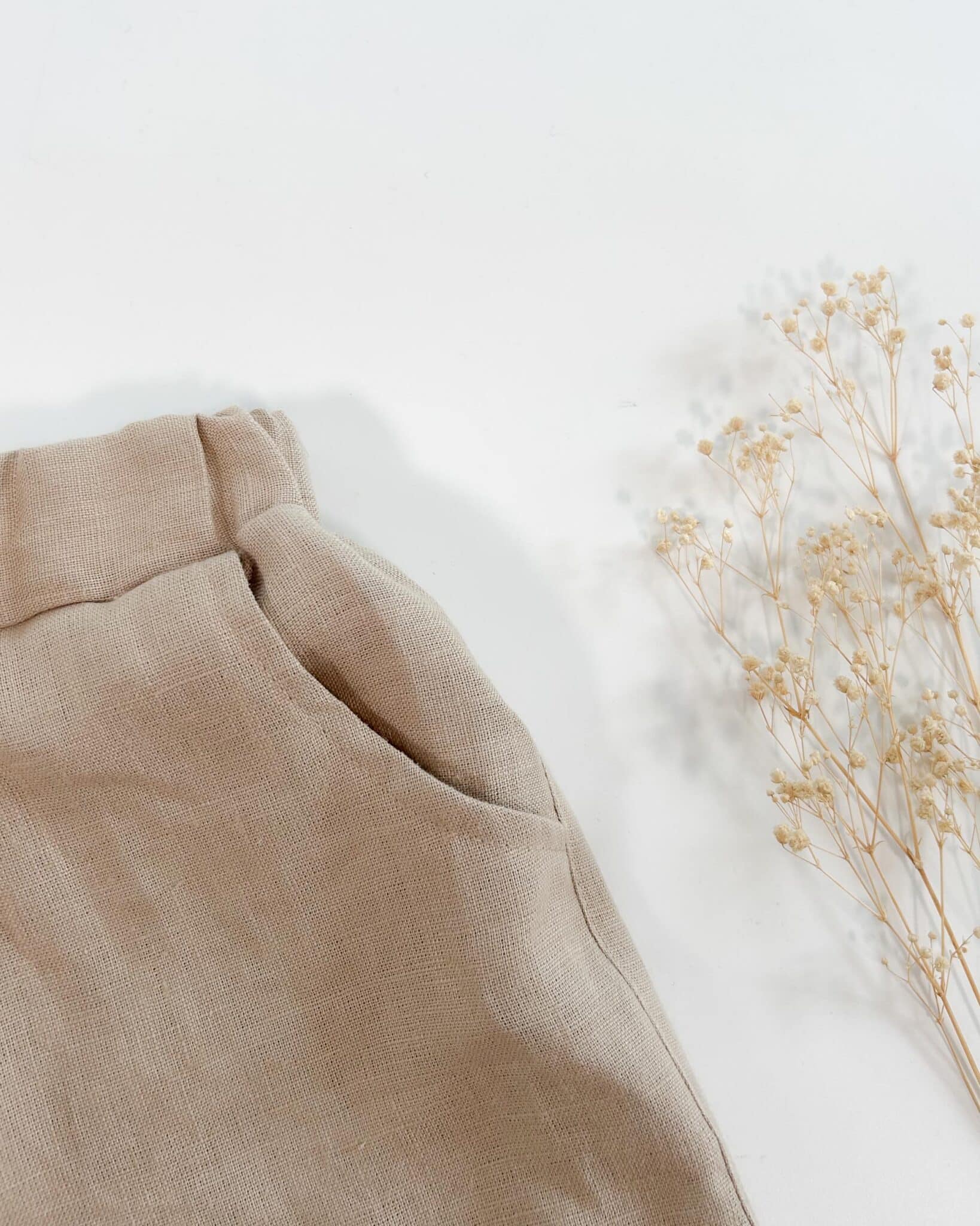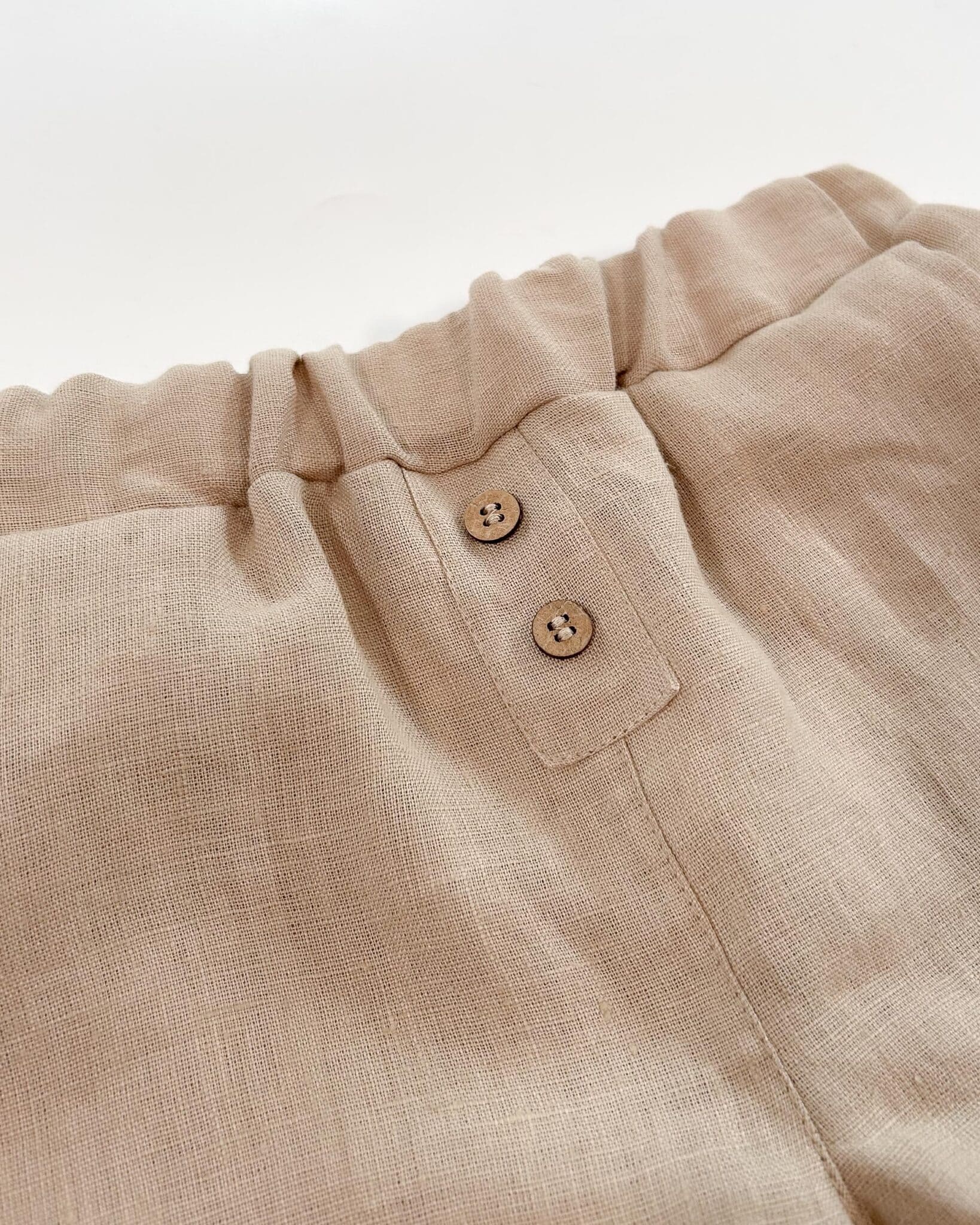 Ein weicher Gummibund sorgt für den perfekten Sitz ohne einzuengen. Die Beinabschlüsse sind so genäht dass man sie einfach hochschlagen kann, sollte sie noch etwas zu lang sein. Die Leinen Short eignet sich wunderbar für den Alltag, aber auch für festliche Anlässe wie Taufe, Hochzeit oder als Geburtstagsoutfit für Babys und Kinder.