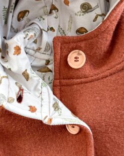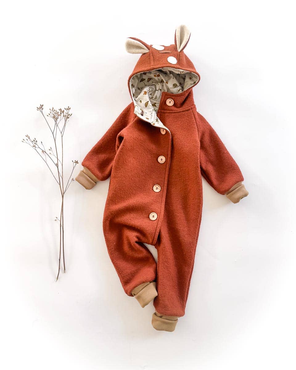 Der Wollwalk Anzug wird mit Natur-Holzknöpfen geschlossen. Innen ist der Overall komplett mit dem weichem und kuschelig weichem Bio-Baumwolljersey gefüttert und Größen- und Textiletikett sind seitlich eingenäht, damit im Nacken auch nichts krazt oder drückt. Durch die ausklappbaren extrawarmen und weichen bio-zertifizierten Merino-Wollbündchen wächst der Overall lange mit und kann euer Kind lange bei seinen Abenteuern begleiten.