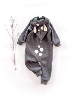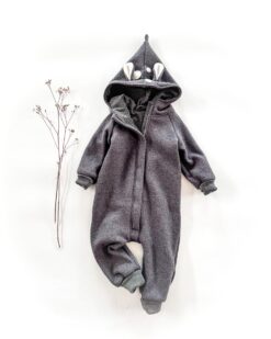 Sofortkauf: Merinowalk Overall mit Reh in Graphit mit Wolljersey-Futter Anthrazit, Gr. 92/98