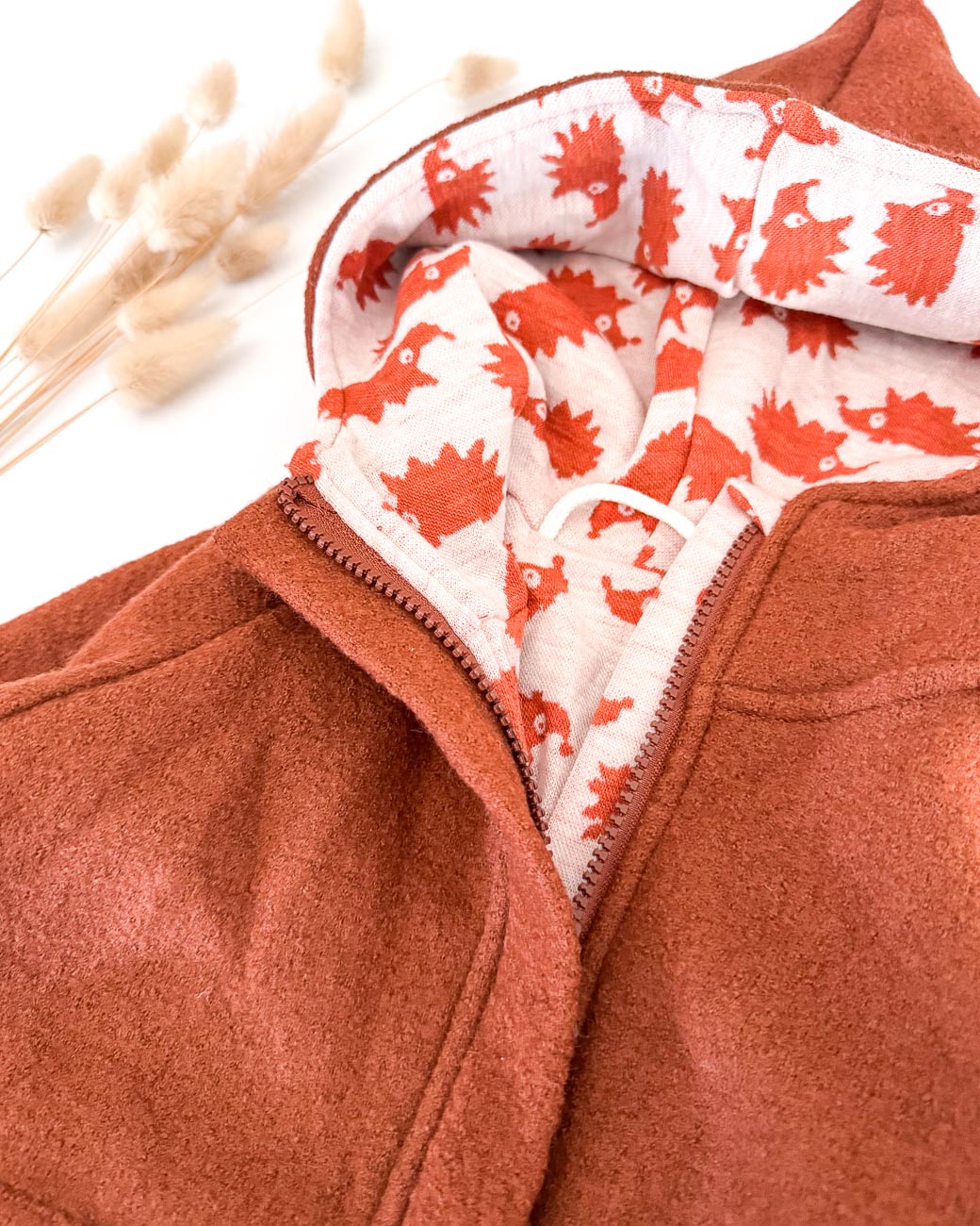 Walkjacke mit Reißverschluss – gefüttert mit Merino-Wolljersey (100% Merinowolle)
