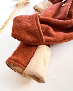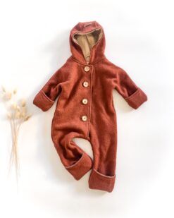 Walkoverall – gefüttert mit Merino-Wolljersey (100% Merinowolle) und Holzknöpfen und Umschlagbündchen für Kinder und Babys